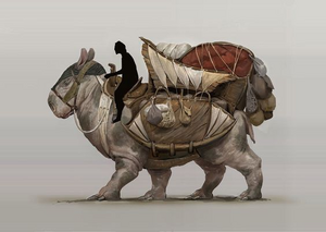 Bred.- Créature massive, semblant être un mélange entre un chameau, un hippopotame, et un rongeur. Docile, et utilisé pour le transport de charges ou personnes, ou tirer des chariots. Herbivore. Reste à étudier.